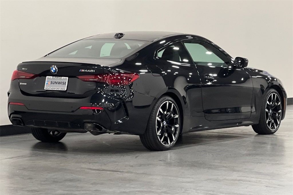 Certified. Black Sapphire Metallic 2025 BMW 4 Series M440i xDrive AWD 8-Speed Automatic Sport 3.0L I6 Active Park Distance Control, BMW Curved Display w/HUD, Connected Package Pro, harman/kardon Surround Sound System, M Shadowline Lights, M Sport Brakes w/Red Calipers, M Sport Package Pro, Navigation, Navigation System, Parking Assistance Package, Parking Assistant Plus, Power Tailgate, Premium Package, Rear-View Camera, Shadowline Package, Surround View w/3D View.