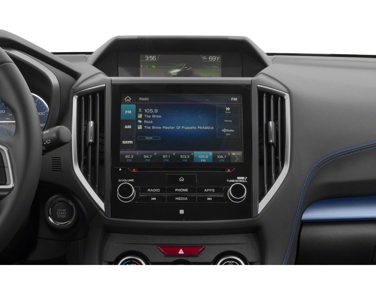 - Radio: Subaru Starlink 8.0" Multimedia Plus System -inc: AM/FM stereo HD Radio w/single disc CD player: CD player w/MP3/WMA/CRR/RW file capability, multi touch gesture high resolution display screen: 8.0" LCD, voice activated controls, Bluetooth® audio streaming connectivity, Bluetooth® hands-free phone and SMS text messaging connectivity (applicable w/compatible cell phone), Near Field Communication (NFC), iPod control capability, rear-vision camera display, SiriusXM All Access Radio and Travel Link (subscription required), 6 speakers, 3.5mm auxiliary input jack, dual USB ports and roof mounted audio and satellite antenna