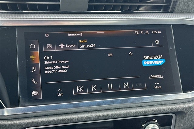 - Radio: Audi Sound System -inc: MMI touch display w/10.1" touchscreen, Audi smartphone interface (Apple CarPlay and Android Auto), Audi connect CARE (limited time subscription) and Bluetooth® w/audio streaming