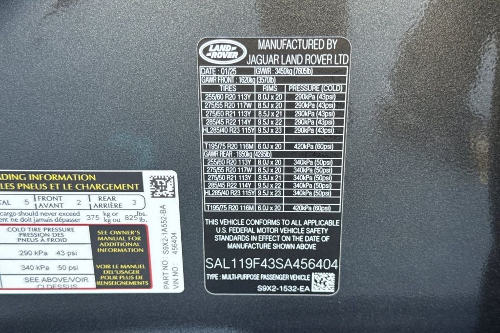 - Rear Tire Size: P275/50YR21